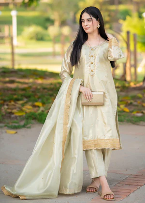 Mahrani is as royal as the name sounds. This Pakistani outfit comes with a soft, deep tone that works well for both day and night events. The dress has a neat thread work and a soft fall. You can wear this to a wedding or a close family event. The cloth feels light on the skin but still looks rich. Pair it with light gold heels and soft waves in your hair. You’ll walk in with quiet grace.