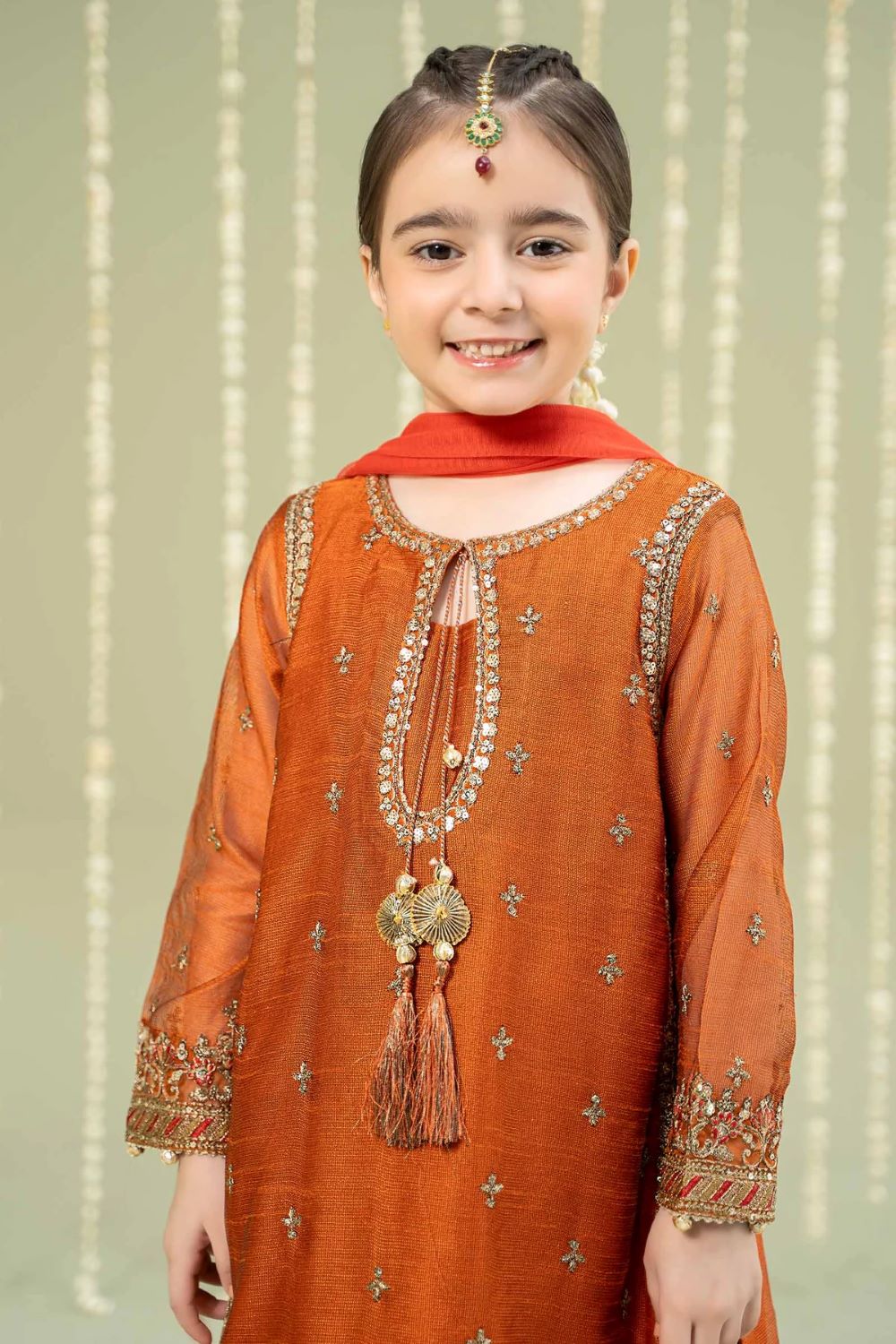 Work Details: Sequins, Tilla & Thread Embroidery With Gotta Balls, Tassels & Kiran Lace Detailing