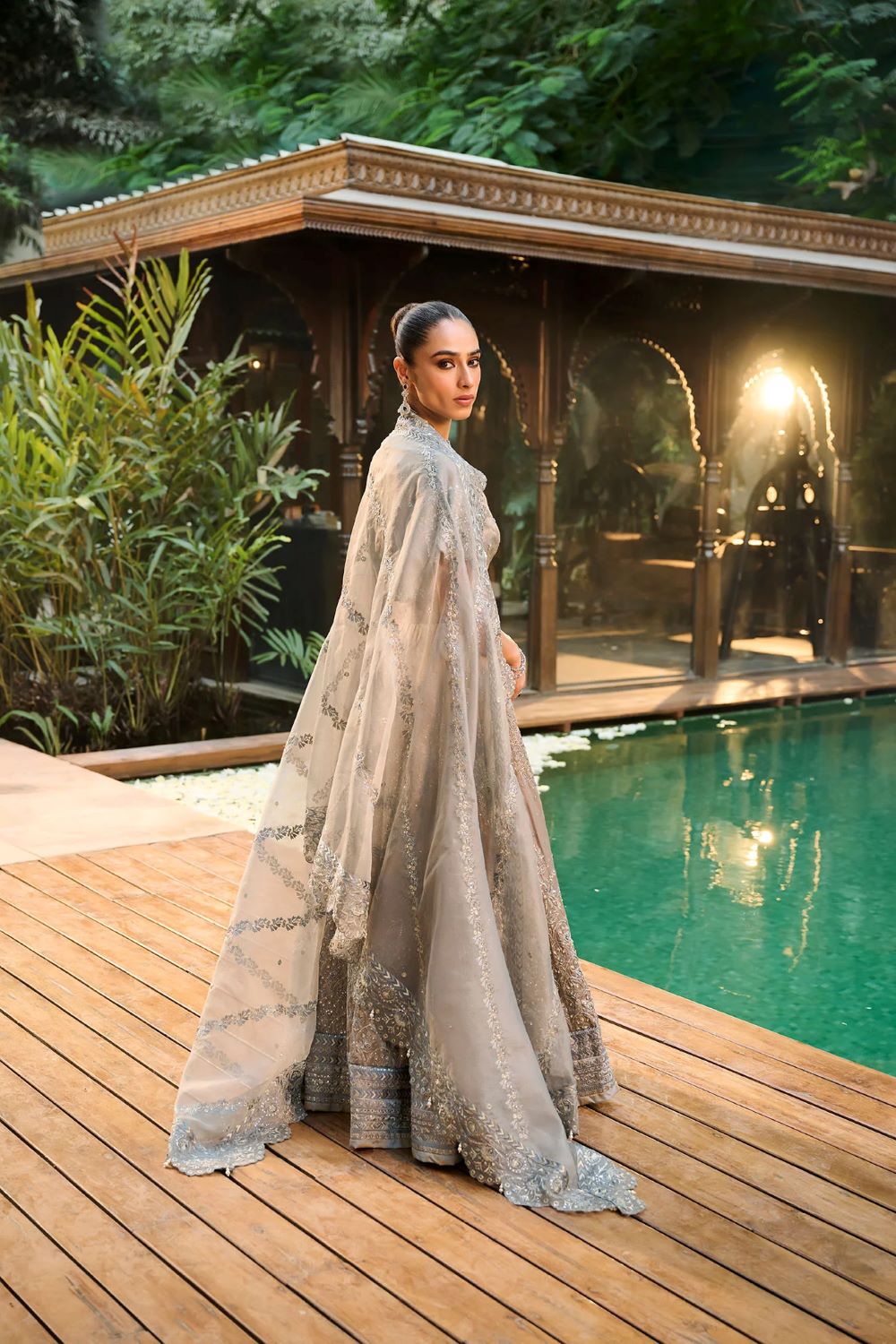 Crafted with great precision, this ensemble features an intricately embroidered blouse, paired with exquisitely styled and embroidered lehnga, completed with a delicately embroidered dupatta, adding grace and elegance to this look. This ensemble from the Alaya collection is a testament to couture craftsmanship, where every thread weaves a story of refined style.
