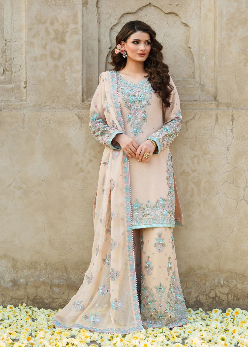 Haseens Official | Falak – 3 Piece Embroidered Chiffon Straight Cut Kurta | Wedding/Guest Wear – Formal