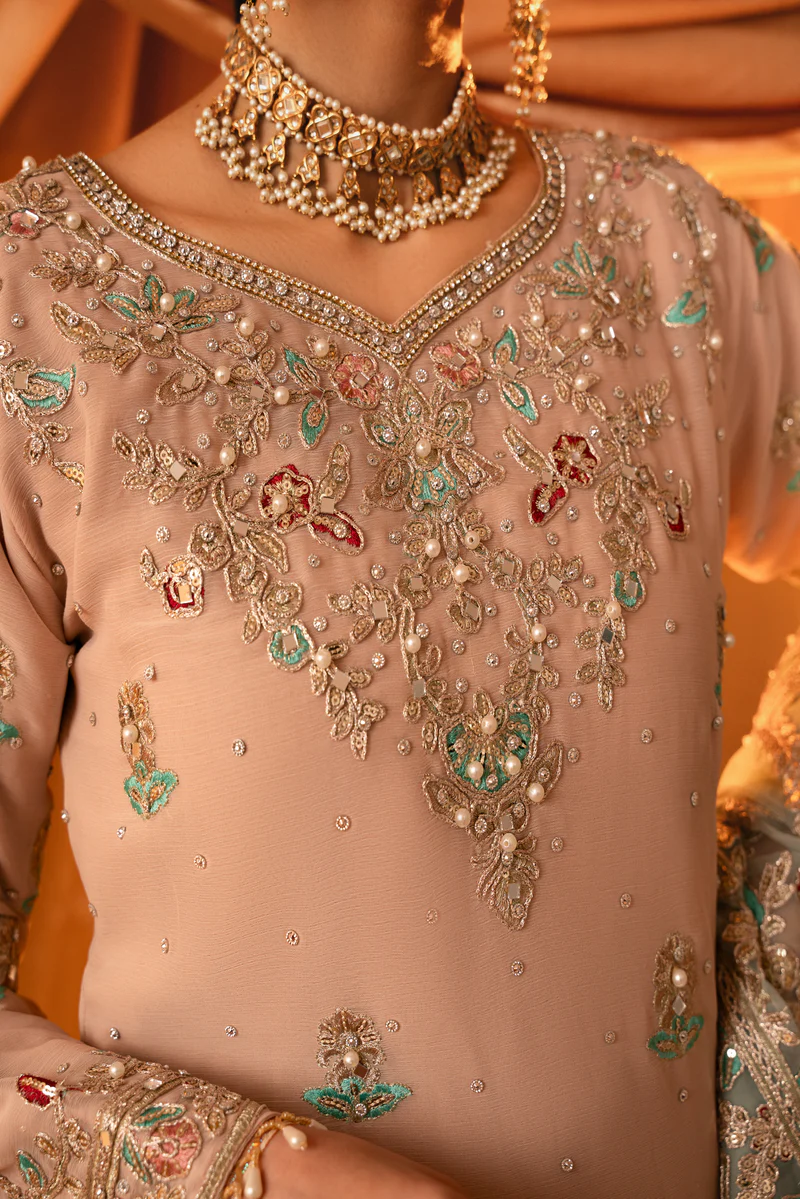 Additional Description:Â Four piece stithced ensemble adorned with zari and hand embellishments.
