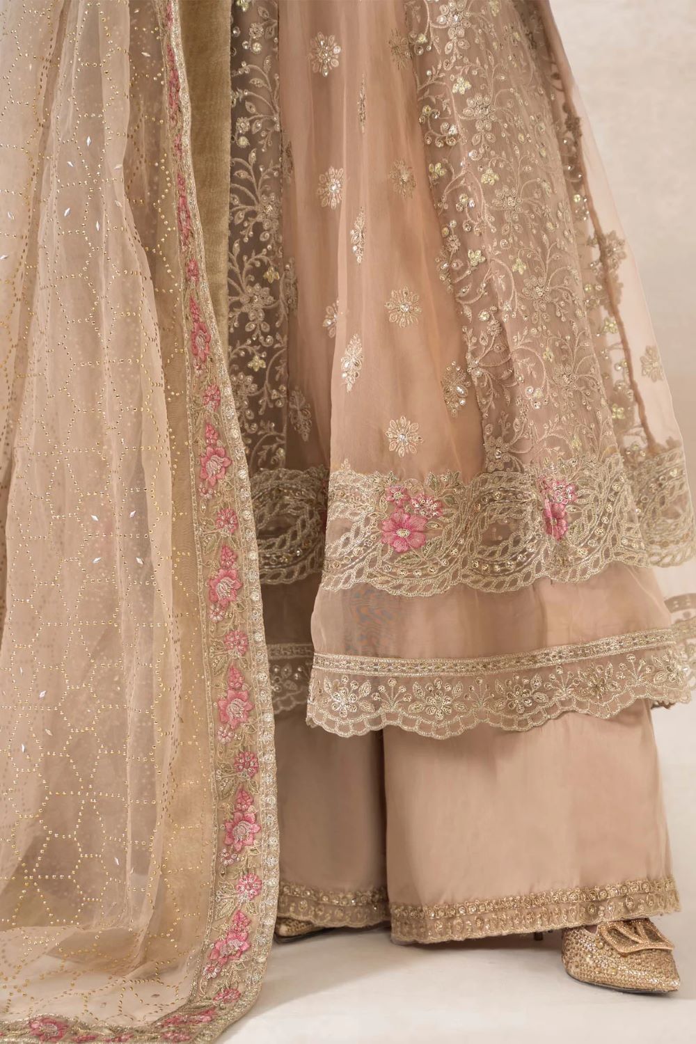 Work Details: Diamantes, Sequins, Tilla, Thread Embroidery & Panni Work