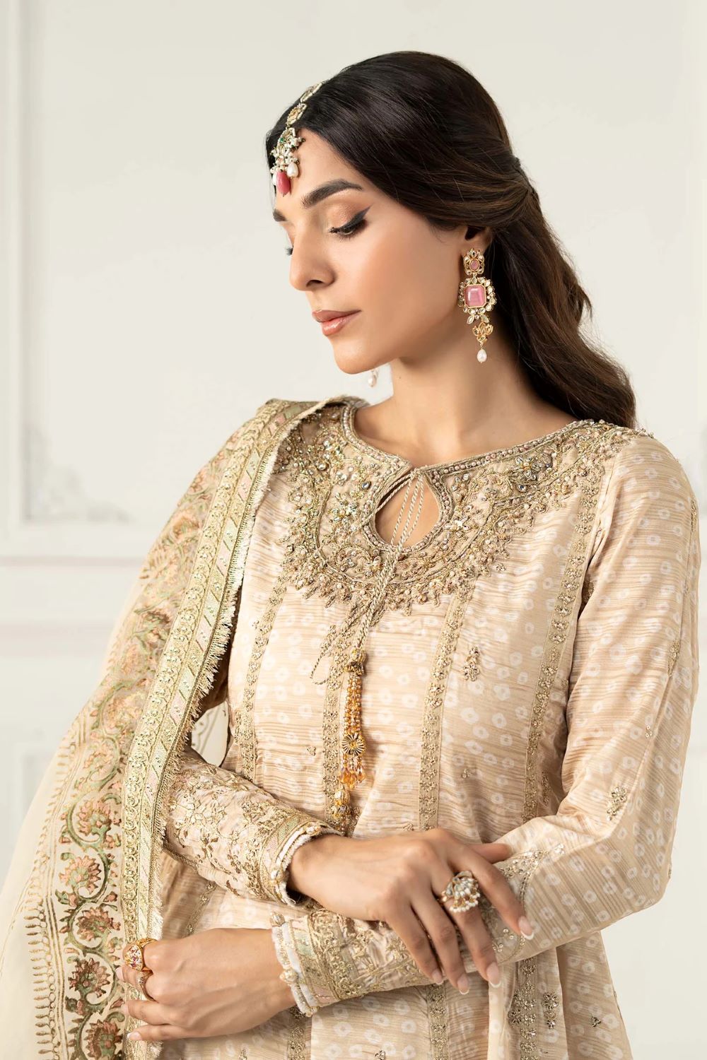 Hand-Embellished Hyderabadi Neckline With Tassels Detailing