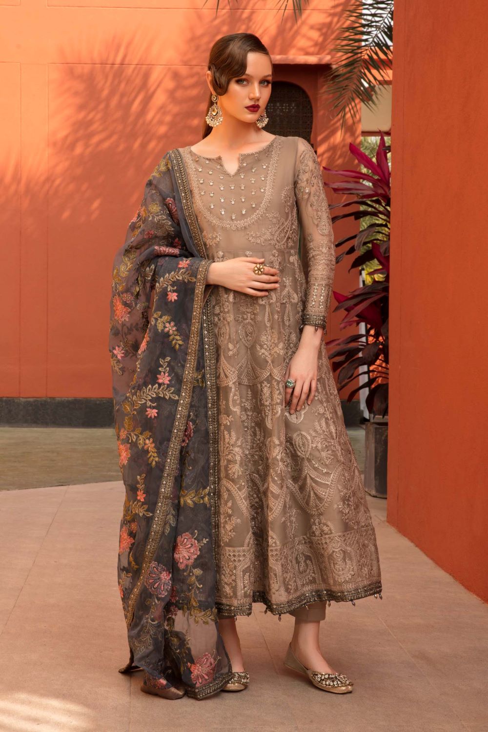 Organza fully embroidered frock with embroidered sleeves Cotton satin straight pant.