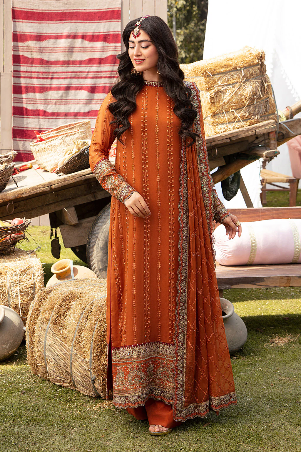 Shirt : An Exquisite Rust Color Full Length Shirt With Embroidered Patti’s & Tassels