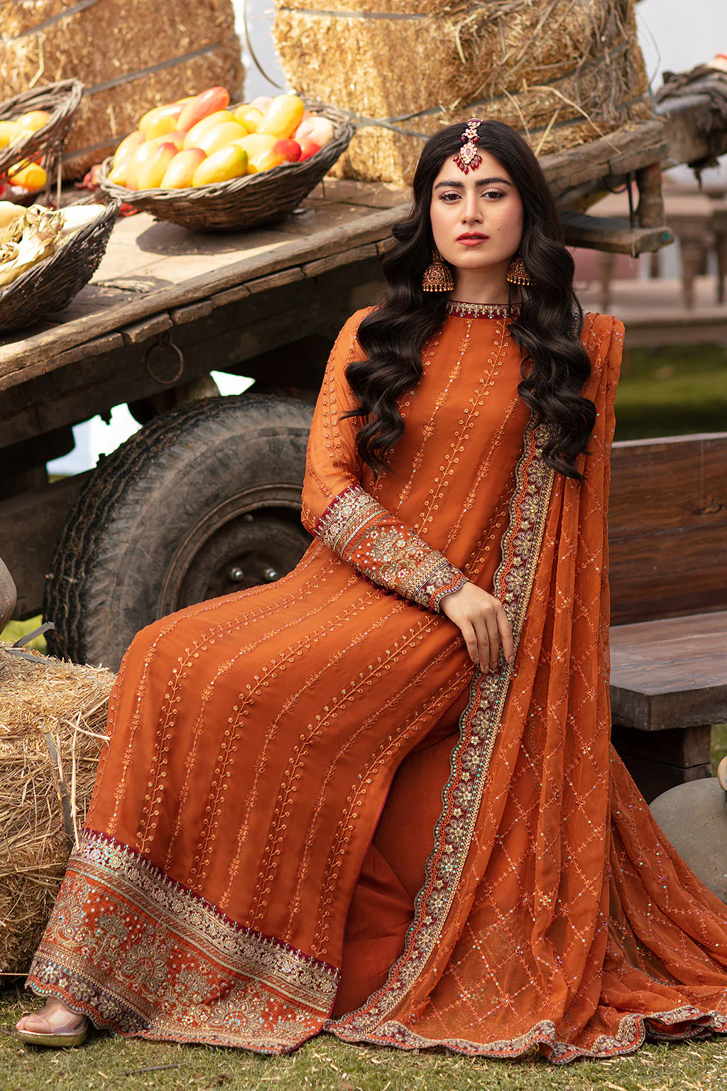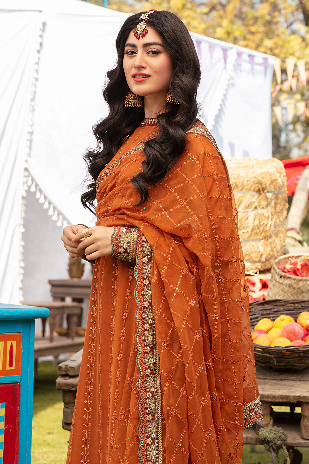 Dupatta : Embroidered Chiffon Dupatta With Four Sided Patti