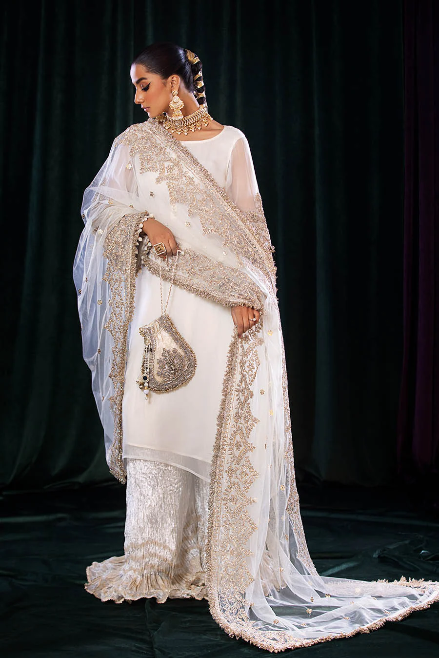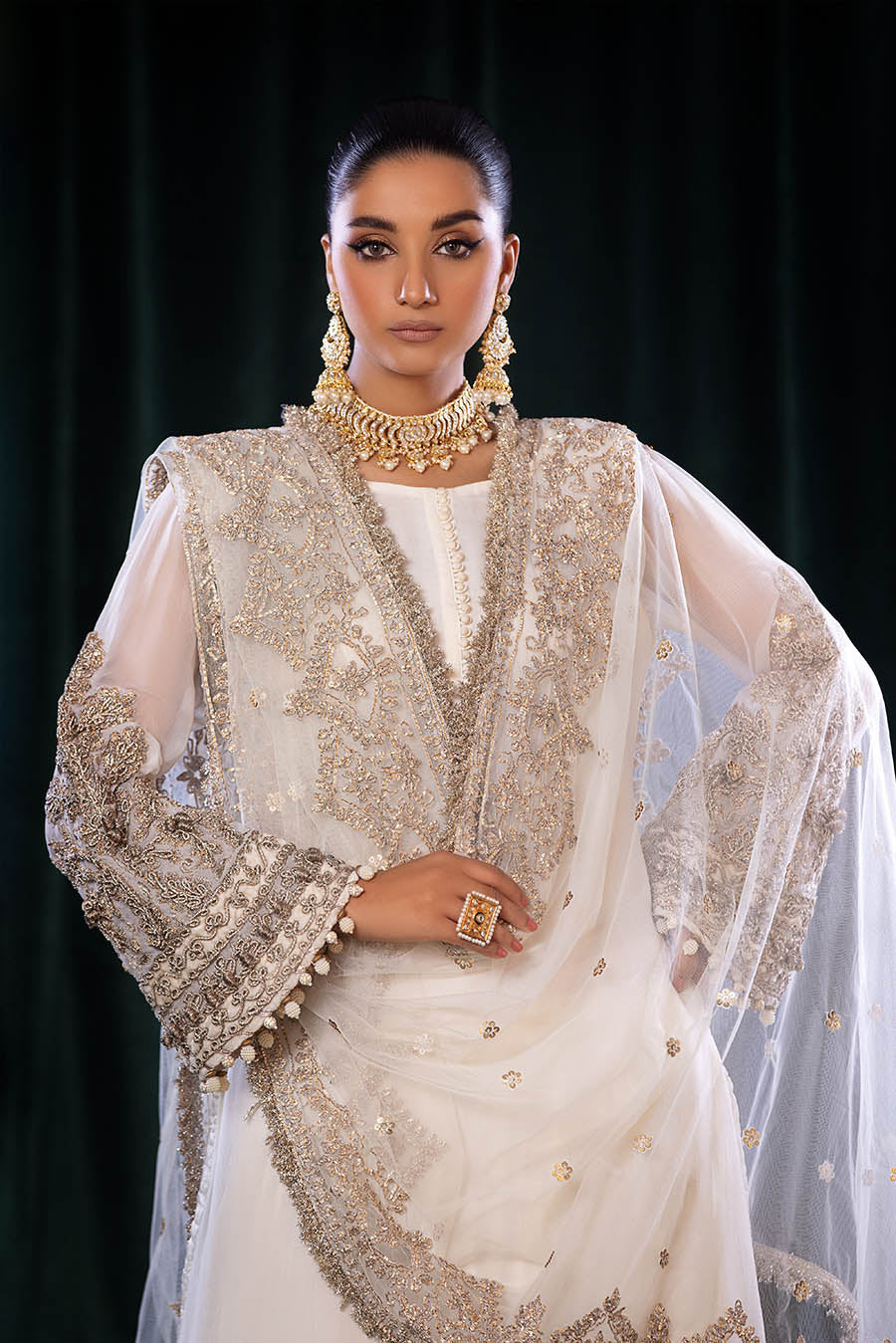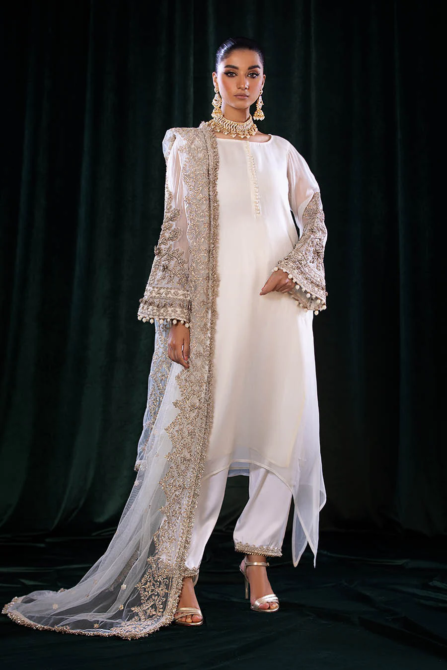 - Sleeves: Same as Shirt (Embroidered with Kora, Dabka and Gotta)