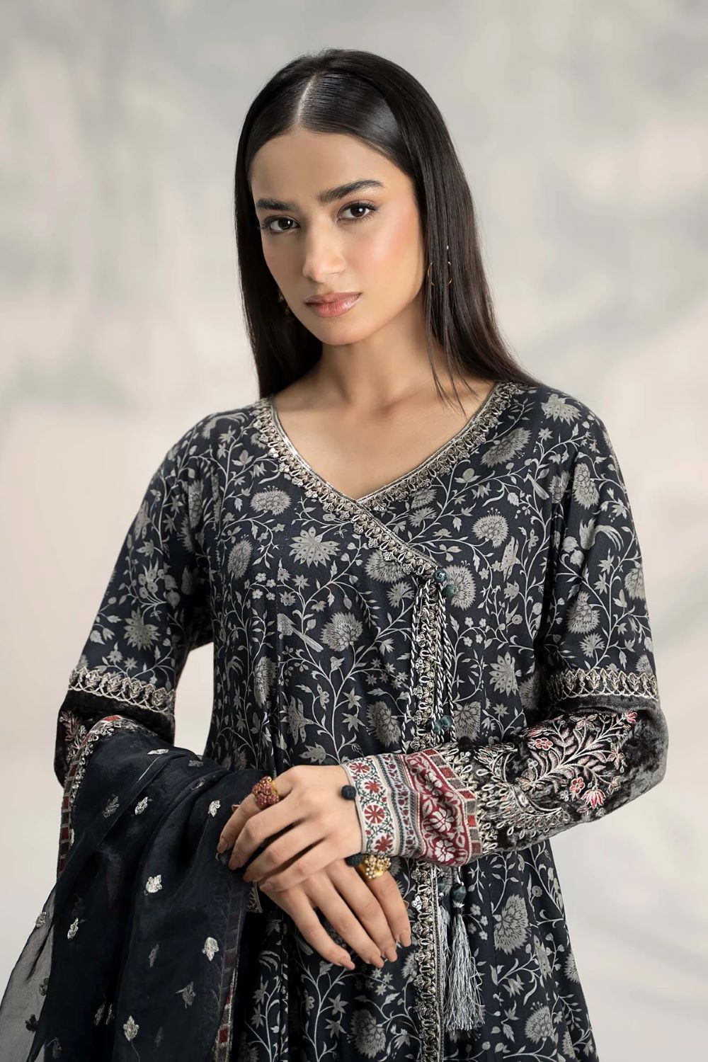 Embroidered Neckline With Tassels